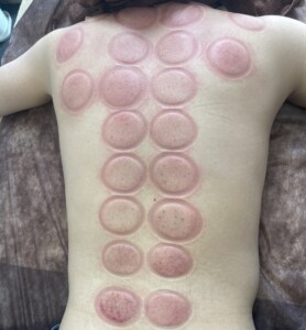 カッピングを行うと、皮膚に赤紫色の丸い跡が残ることがあります。これは「(おけつ)」と呼ばれ、